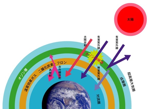 この紫外線を地上はるか上空の成層圏で吸収し生物を守っているのが、オゾン層なのです。